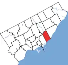 In 2003, the western boundary was altered so that the portion west of Coxwell Avenue was transferred to the neighbouring riding of Toronto-Danforth.[4] This riding was unchanged after the 2012 electoral redistribution.
