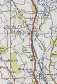 Stapleford is a village and civil parish of 134 acres (54 ha) on the A119 road, in the East Hertfordshire district, in the county of Hertfordshire, England. Stapleford is located between Waterford and Watton-at-Stone in the Beane valley; the little river was forded at this point, giving rise to the village. Stapleford's parish church is St Mary's Church.[1] Beane is a hamlet of Stapleford.