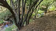 In a 2001 report thirty four barriers to trout migration were identified within Bear Creek and its West Union Creek, Bear Gulch, Squealer Gulch, and McGarvey Gulch tributaries.[14] That report identified the culvert for McGarvey Gulch creek at the Richards Road crossing in Huddart County Park as a significant migration barrier for adult and juvenile steelhead and was reconstructed with funds from the State Department of Transportation's San Francisco Bay Salmonid Habitat Restoration Fund.[17]