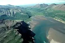 In 1989 the park areas was heavily affected by the Exxon Valdez Oil Spill which devastated the Alaska Peninsula. Puale Bay was the most heavily oiled bay outside of Prince William Sound.[3] In an effort to determine species presence, distribution, habitat use, and migratory patterns, extensive land bird studies were conducted from 1995 through 1998 at various locations around Becharof Lake.[3] Biologists continued the monitoring work in the park 2001 through 2003 using the same methods, paying notable attention to seabird activity, along with caribou and Alaskan moose populations.[3] The refuge is affiliated with the Alaska Fish and Wildlife Cooperative Research Unit at the University of Alaska Fairbanks to conduct research into the drainage basin east of the Ugashik Lakes on the Alaska Peninsula to monitor moose activity.[3]