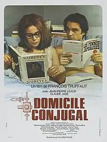 Bed and Board (French: Domicile conjugal) is a 1970 French comedy-drama film directed by François Truffaut, and starring Jean-Pierre Léaud and Claude Jade. It is the fourth in Truffaut's series of five films about Antoine Doinel, and directly follows Stolen Kisses, depicting the married life of Antoine (Léaud) and Christine (Jade). Love on the Run finished the story in 1979.