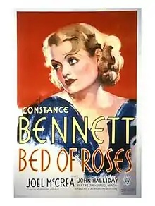Bed of Roses is a 1933 pre-Code romantic comedy film co-written and directed by Gregory La Cava and starring Constance Bennett.[4] The picture was released by RKO Radio Pictures with a supporting cast featuring Joel McCrea and Pert Kelton.