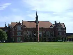 The Main School Building, originally built in 1891, is a Gothic Revival Grade II listed building.[12][13] On the night of 3–4 March 1979, much of the building was gutted by fire as a result of arson. The internal structure of the building was destroyed and thirty classrooms were lost. Almost all pupil records were saved but books, furniture and the large collection of portraits of former headmasters were lost. However, the school was in full operation on Monday 5 March.[14][15]