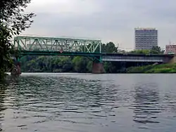 The Belarusian railway bridge (Russian: Филевский) in Moscow is a three-span steel girder bridge over the Moscow River, located on the Belarusian suburban direction of Moscow Railway. It is the outcome of a structure built in 1895, which was renovated twice – in 1938 and 1961.