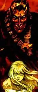However, he instead is trapped in Limbo, also called Otherplace, where he spends his years conquering it. Once complete, he draws the young Illyana Rasputina to him and she is transported to Limbo.[3] His intention is to make her his disciple and use her to open a gateway for the Elder Gods. The X-Men follow to save Illyana. Due to the warping of space and time in Limbo, there are two alternate but equally valid outcomes to the rescue attempt. In one, the X-Men transport Illyana back to Earth, but are themselves trapped in Limbo, and are one-by-one killed by Belasco and his minions over the course of several decades; in the other, the X-Men escape back to Earth and Illyana is trapped in Limbo.[4] He makes Illyana his apprentice in the dark arts, transforming her into a "demon sorceress." He forcibly shapes part of her soul into the first Bloodstone, giving her great potential for power and allowing him to hold sway over her so that she willingly creates a second. However, after guidance from the remaining X-Men in Limbo, she rebels against him, driving him from Limbo.[5] Magik is later deposed as the ruler of Limbo by the demon S'ym.[6]