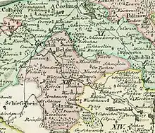 In Pomerania, which had belonged to Brandenburg-Prussia since 1648, a district reform was carried out in 1724. The number of districts and associated district councils were significantly reduced in order lessen the strong territorial fragmentation that had arisen as a result of the complicated aristocratic possessions in Eastern Pomerania. The existing Belgard and Polzin districts were merged into Belgard-Polzinscher district on January 1, 1725.[1] The district included the towns of Belgard and Polzin, the royal office of Belgard, and a large number of noble villages and estates.[2][3]