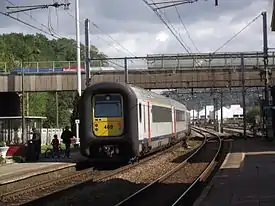 A passenger train at Andenne station in 2010