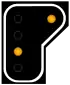 Triangle with a black base and two horizontal white lights The halt aspect applies only to minor movements.