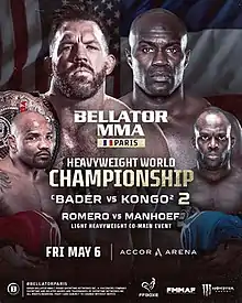 4. "Bellator MMA | BELLATOR MMA SET FOR RETURN TO PARIS ON FRIDAY, MAY 6 WITH MASSIVE HEAVYWEIGHT WORLD CHAMPIONSHIP BOUT". www.bellator.com. Retrieved 2022-01-30.
