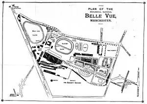 Sporting events became a permanent feature at Belle Vue after an athletics stadium was built in 1887.[85]