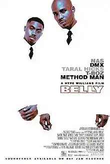 Belly is a 1998 American crime drama film written and directed by music video director Hype Williams, in his feature film directing debut.[3][4] Filmed in New York City, the film stars rappers Nas and DMX in their film debut, alongside Taral Hicks, Method Man, and R&B singer T-Boz and an uncredited cameo from Jamaican reggae and dancehall singer Sean Paul [5][6].