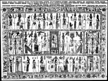 The Tablet is now regarded as of Roman rather than Egyptian origin, dating to some time in the first century CE.[1] Little is known of its subsequent history until after the sack of Rome in 1527, when Cardinal Bembo acquired it from a certain locksmith or ironworker into whose hands it had fallen. After Bembo's death in 1547, the Tablet was acquired by the Gonzaga rulers of Mantua, remaining in their museum until the capture of the city in 1630 by Ferdinand II's troops. It then passed through various hands until the French conquest of Italy in 1797. Alexandre Lenoir mentioned in 1809 that it was on exhibition in the Bibliothèque Nationale. After Napoleon's downfall it was returned to Italy to become a central exhibit in what is now the Museo Egizio at Turin, where it has remained.[2]