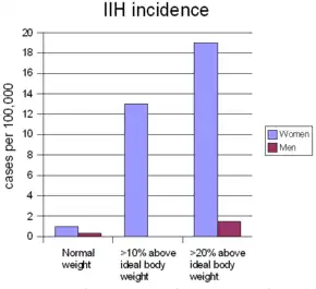 The number of new cases per year of IIH is strongly determined by sex and body weight. The figures in females are in women between 20 and 45 years old.[5]