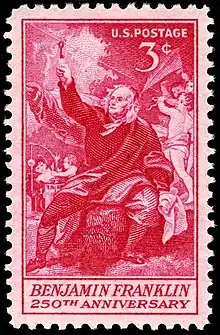 In 1965 the United States selected this painting to be featured on their memorial postage stamp commemorating the 250 anniversary of Benjamin Franklin's birth.[6]