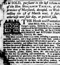 Newspaper advertisement for the sale of Tasker's estate Belle Air in 1771
