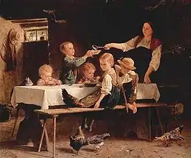 The following year, he began attending the Kunstakademie Düsseldorf and became a member of "Malkasten" (Paintbox), a local artists' association. He left the Academy for one year to work with Rudolf Jordan as a private student.[2] Eventually, he decided to devote himself to depicting peasant life, which he observed for several years by visiting the Bernese Oberland.