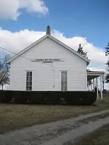 The Benjaminville Friends Meeting House is the only remaining building in the ghost town of Benjaminville
