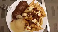 A berenhap (Bear's bite in English) or spoetnik (Sputnik in English) is a deep-fried fast food snack from the Netherlands.[1] It consists of a sliced meatball and fried onion rings on a wooden skewer, smothered in peanut sauce. The snack is also served with "Zigeunersaus" (literally translated: Gypsy-sauce),or a cold curry sauce should one not like peanut sauce. Sometimes, pineapple or bell pepper are used as well as onion rings.