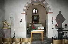 Regular processions to the church were mentioned in 1586, from surrounding villages including Villmar on the Lahn and Panrod, supporting the view that the church was a Mutterkirche (mother church) for a region.[1] It was an early Christian centre in the area,[3] along with the St. Blasius, Dornburg, St. Severus and St. Lubentius, Dietkirchen. The church served as a parish church until 1571, then as a Friedhofskirche (cemetery church) for the surrounding which belongs to Werschau.[2]