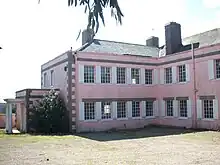 Windward House,[12] Le Mont Sohier, St Brelade (built in 1924, since demolished c.2010) with lush grounds overlooking Ouaisné and St Brelade's Bay, was a stunning location used internally and externally throughout all nine series and the Christmas specials. This pink-and-grey building with white pillared entrance first appeared in series 1, episode 6, "Portrait of Yesterday", as the home and wedding venue of the incidental characters. Windward House then reappeared from series 2, episode 1, as Charlie Hungerford's main residence, where he hosted a large garden fête, and then in almost every episode of the show—used either as part of the central plot or as a backdrop for family gatherings, drinks parties, business meetings, barbecues, marquee events, etc. The entire house was used over time, particularly the living room with French windows, dining room, conservatory and long gallery hallways. External filming regularly included the gardens, paddock, driveways, fruit gardens, greenhouse, cider press and rockery.