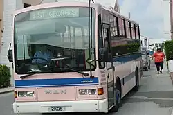 MAN manufactures the diesel buses, and Berkhof outfits them as coaches. Bermuda received 15 new low-floor buses in March 2009. These buses have 32–34 seats, fewer than the older buses, but allow wheelchair access. The livery of all buses is pink and blue recalling the colors of the Bermuda beaches.