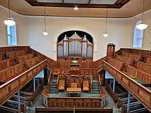 By the 1920s the chapel was too small, and a decision to rebuild was taken in 1927. Bethany was re-opened in October 1929 with a new seating capacity of 800 and room for another 300 in the adjoining vestry.[12] The work was completed by William Evans, a local contractor and member of the Ammanford Urban District Council. J.T. Job and a young Dr Martyn Lloyd Jones were among the preachers at the opening services.[30]