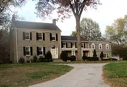 The foundation of the original house was found using ground penetrating radar to the west of the existing structure. The center portion of the existing house is the oldest; dendrochronology revealed that the trees for the wood in that portion of the house were felled the winter of 1827–1828. Dendrochronology also revealed that the large granite section of the house to the west was added in 1841. The east section was added in 1960 by owner John M. DeBoy. While the house looks wide from the street, it is only one room deep. Outbuildings include a smoke house, a carriage house, and the stone "Dower House" which may have been built in the early 1830s to serve as a summer kitchen.