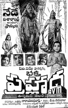Bhakta Prahlada (transl. Prahlada, the Devotee) is a 1967 Indian Telugu-language Hindu mythological film directed by Chitrapu Narayana Rao based on a script by D. V. Narasa Raju. It stars S. V. Ranga Rao and Anjali Devi. Roja Ramani, in her film debut, plays the title character. Bhakta Prahlada is produced on the AVM Productions banner by A. V. Meiyappan and his sons, M. Murugan, M. Kumaran and M. Saravanan. The film is based on the legend of Prahlada, a character in Bhagavata Purana known for his devotion to the Hindu god Vishnu.