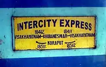 - ↑ "Vskp-Bbs intercity to run 6 days a week". The Hindu. 30 June 2011. Archived from the original on 10 November 2012.