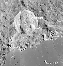 - ↑ "Bianchini (lunar crater)". Gazetteer of Planetary Nomenclature. USGS Astrogeology Research Program.