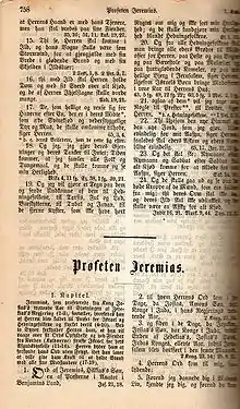 A page from the Bible Society edition of 1891. The picture shows the start of Jeremiah, with chapter summaries.