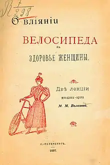 At the same time as male doctors were stating the capabilities of women and the weakness of their bodies in relation to the bicycle, bicycle enthusiasts disagreed with this medical assessment, and asserted that the physical activity was good to improve one's health and vitality.[22] Women began to express what their bodies were capable of through magazine articles. Women like Mary Bisland, Mary Sargent Hopkins, and Emma Moffett Tyng contested medical commonplaces and promoted new ones in their place. These women stated that cycling brought long-inactive muscles back to life, and helped riders feel better emotionally and encouraged women to use their own experiences with the bicycle to determine their physical limits. These women brought to public attention the positive aspects that help women riders. The bicycle not only makes them literally stronger, but also makes them more confident in their own abilities. This in turn not only gives women a greater agency over their body, but also mentally strengthens them to take on their previous domestic role and explore new roles in the public sphere.[23]