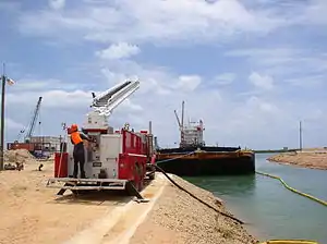 ![]() Oil barge being loaded at Big Creek Port | |