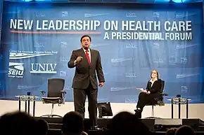 - ↑ Nagourney, Adam; Zeleny, Jeff (March 22, 2008). "First a Tense Talk With Clinton, Then Richardson Backs Obama". The New York Times. Retrieved April 26, 2010.