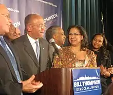 Thompson ran unsuccessfully in the 2009 election for Mayor of New York as the nominee of the Democratic and Working Families parties,[5] and he unsuccessfully sought the Democratic nomination in the 2013 election for mayor.[6]