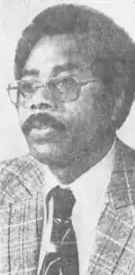 In 1974, McKinney successfully pushed through a bill that made carrying a gun without a license a felony; he stated, "We have lost our youth to Super Fly", referring to young people who "don't have respect for laws, for other people or for their parents".[7] In 1975, McKinney criticized gun control legislation, instead claiming that harsher sentences for crimes involving guns was needed and that police should focus more on those crimes.[8] In 1976, McKinney had intended to re-introduce the Equal Rights Amendment, although he was asked not to by female lawmakers as the amendment had previously failed in the legislature.[9] In 1981, he acted as co-chairman of the campaign of Sidney Marcus for Mayor of Atlanta. Marcus was a prominent Jewish leader; his opponent was the well-known African-American politician Andrew Young. McKinney's choice antagonized much of the African-American community in Atlanta.[10] During a 1982 special general election,[11] McKinney unsuccessfully ran as an independent candidate in Georgia's fifth congressional district;[12][13] he criticized the Reagan administration, claiming "His policies and programs are anti-people and anti-poor."[14] He received 13.7 percent of the vote.[11]
