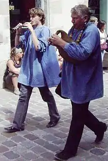 Traditionally it is played in duet with the talabard, a double-reed instrument which sounds an octave below the binioù chanter, for Breton folk dancing. The binioù bras is typically used as part of a bagad band, although it is sometimes also paired with a talabard.