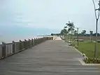 Bintulu is located 610 kilometres (380 mi) northeast of Kuching[51] 216 kilometres (134 mi) northeast of Sibu,[52] and 200 kilometres (120 mi) southwest of Miri.[53] Bintulu is located near the mouth of the Kemena River,[54] in the coastal region of central Sarawak.[24] Geology of the coastal area was formed during the Pleistocene period; silt, clay, and gravel can be found here. Geological formation from the Oligocene period is found in the inland area, which contains limestone, siltstone, and sandstone. The soil is generally soft.[55]