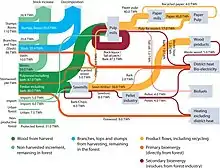 Wood residues are by-products from forestry operations or from the wood processing industry. Had the residues not been collected and used for bioenergy, they would have decayed (and therefore produced emissions)[lower-alpha 11] on the forest floor or in landfills, or been burnt (and produced emissions) at the side of the road in forests or outside wood processing facilities.[26]