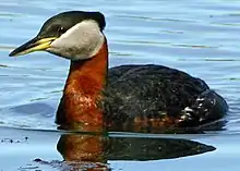 Grebes are small to medium-large freshwater diving birds. They have lobed toes and are excellent swimmers and divers. However, they have their feet placed far back on the body, making them quite ungainly on land. Six species have been recorded in Yellowstone.