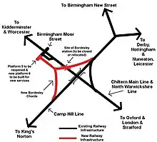 - ↑ More trains an hour through Birmingham Moor Street as part of £2 billion Midlands rail upgrade plans Archived 14 January 2023 at the Wayback Machine, Birminghamupdates.com; 26 June 2019