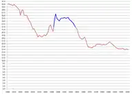- ↑ CDC Bottom of this page https://www.cdc.gov/nchs/products/vsus.htm "Vital Statistics of the States, 2003, Volume I, Natality", Table 1-1 "Live births, birth rates, and fertility rates, by race: United States, 1909-2003."