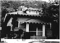 A short distance further west on the right hand side of Tombstone Canyon is an excellent example of a post-World War I vernacular bungalow residence. Continuing west under the bridge, which carries US Route 80 over Tombstone Canyon, an unusually large-scale Craftsman style residence is visible. This house may be a prefabricated Sears-type "kit" house. Pueblo Court, Bisbee's first motel is seen on the north side of Tombstone Avenue, among the group of "suburban"-spaced houses on both sides of the road, on generous-sized lots.[5]