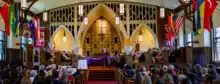In 1941, The headmaster the Rt. Rev. Edward Bidwell left to become the Assistant Bishop of Canterbury and the Bishop of Ontario. In 1955, the 18th Governor General of Canada the Rt. Hon. Vincent Massey inspected the BCS cadet corps. In 1958 the school gym/ballroom was consecrated as St.Martin's Chapel by order of the Lord Bishop of Québec, The Rt. Reverend Philip Carrington and BCS students no longer used the chapel at Bishop's University.[5] An organ was installed behind the Cross in 1958. A stained glass window was given to BCS during the closing ceremony of St. Helen's School, Dunham, Québec. It is now installed at the top of the staircase to the chapel. BCS has grown more secular entering into the 21st century.