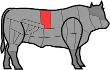 The area of the sirloin and the rib, from which the cut of meat derives.