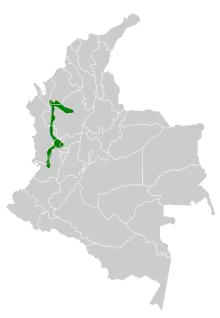 Its natural habitat is subtropical or tropical moist montane forests. It is threatened by habitat loss.