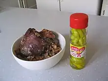 Texas caviar, another traditional dish in the American South, is made from black-eyed peas marinated in vinaigrette-style dressing and chopped garlic.[29]