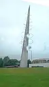 An example of a larger work is the tapering steel column designed by Eillis O’Connel called "Tower of Light". It "is a futuristic design which comprises a spectacular tower of stainless steel mesh, interwoven with fibre optic cables that light at night and a translucent blue resin casting at the apex."[2]