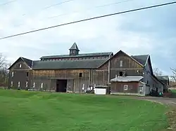 Black and White Farm Barn is a historic barn located near Sonyea in Livingston County, New York. It is a large two story wood-frame building built in 1884 on a 600-acre (2.4 km2) farm. The barn is rectangular in plan and measures 160 feet (49 m) in length and 200 feet (61 m) in depth. It features a central courtyard which measures approximately 80 feet (24 m) in length and 120 feet (37 m) in depth.[2]