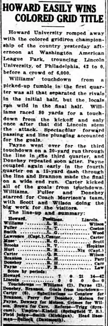 | BAA | Baltimore Afro-American | 1947[43]–1948,[44] 1953[7] | all HBCU teams |